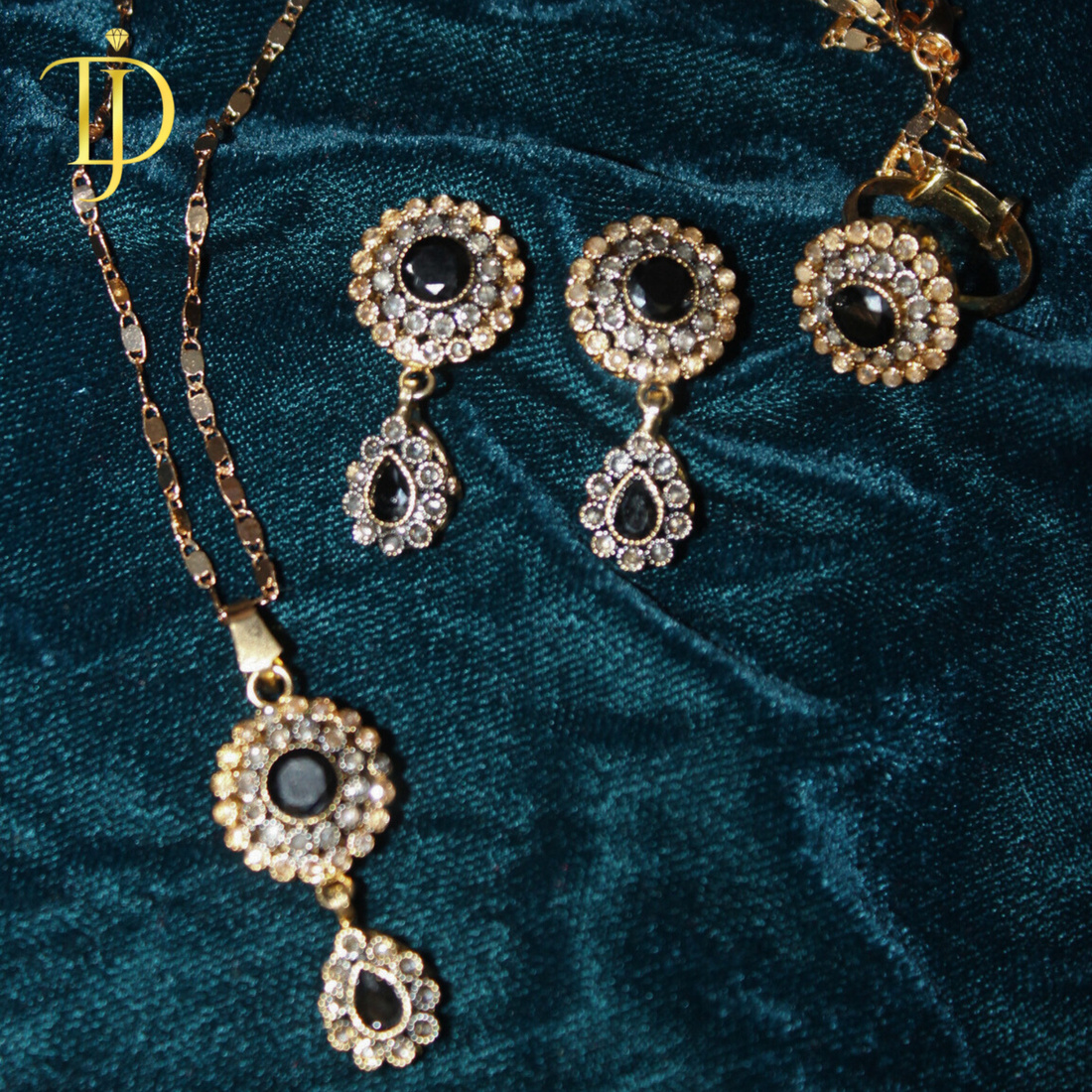 Noir Elegance Black Stone Pendant Set